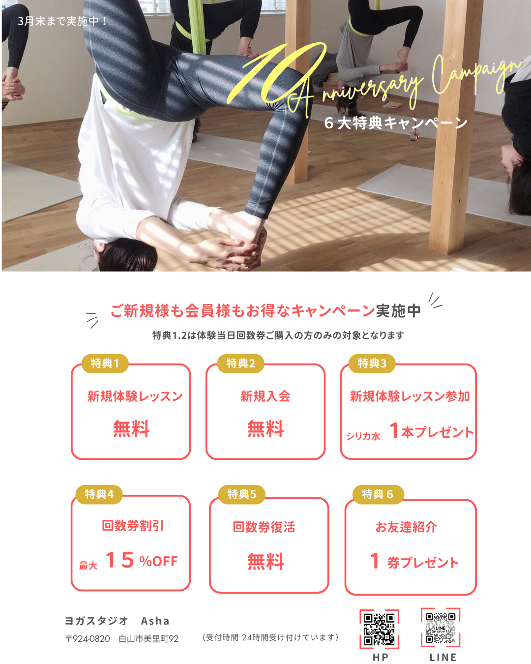 キャンペーン期間中にお友達とご来店&ご紹介いただくと1名紹介ごとに1回券プレゼント🎁