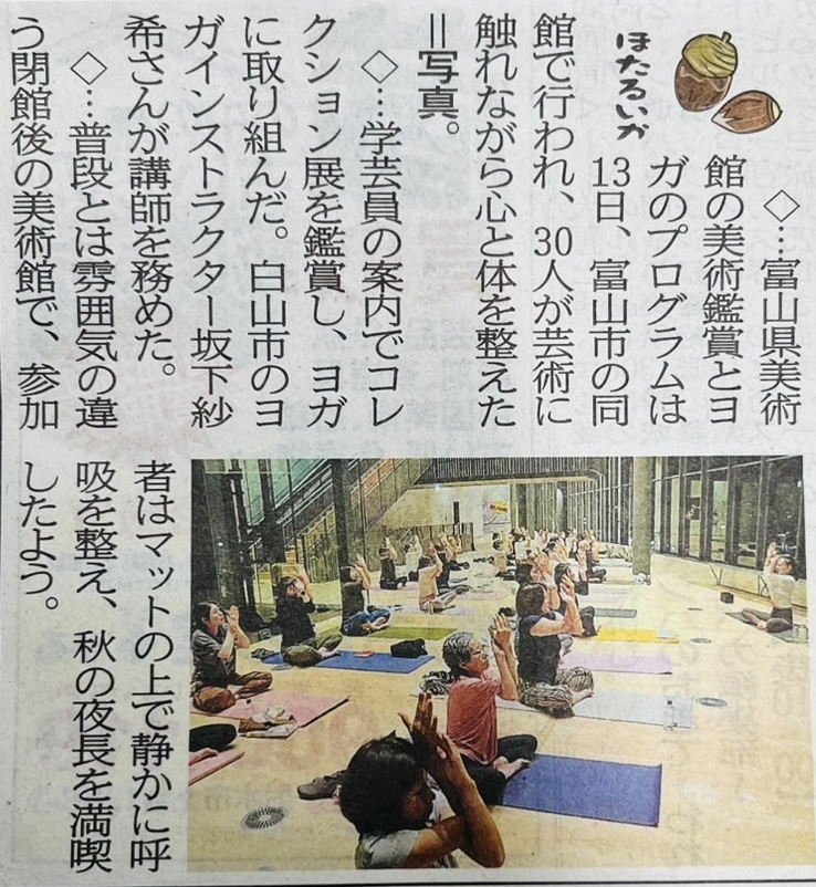 富山県美術館で開催されたヨガイベントを掲載いただきました。